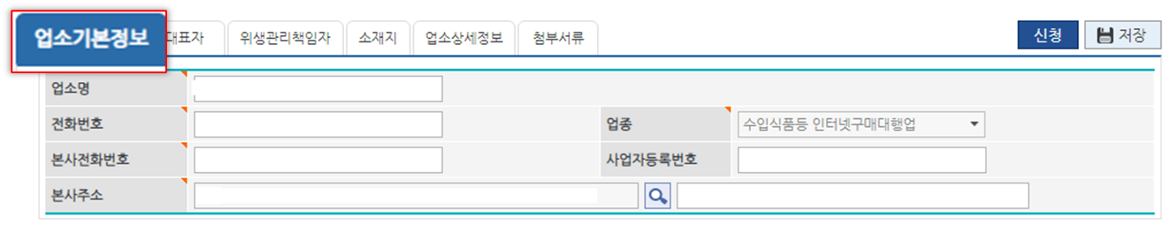 신청인 정보를 입력하고, 공동이용 동의를 눌러준 후 하단에 업소기본정보, 대표자 등 전부 작성할 것입니다.