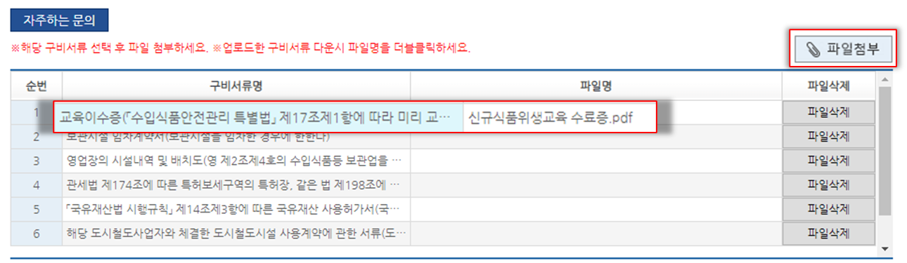1. 수입식품 안전관리 수료증을 보관합니다.