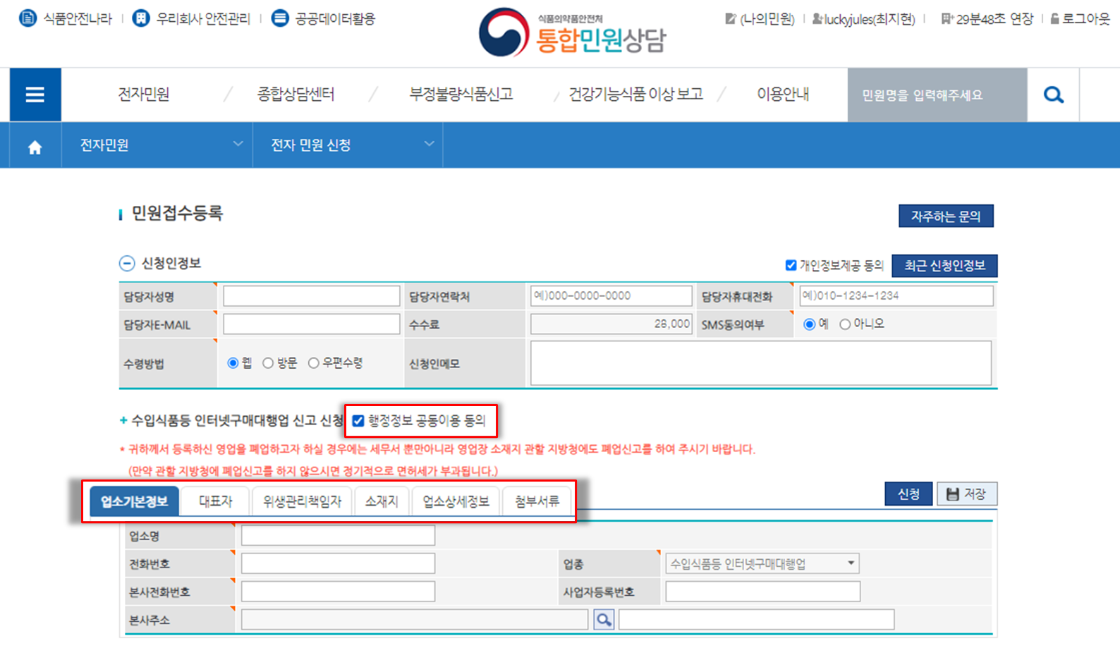 수입식품 신청 수수료는 28,000원이오니 이 점 참고하시면 되겠습니다.